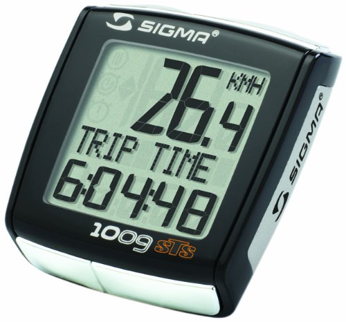 The BC 1009 STS Wireless has everything a bike rider needs. Next to standard functions this all around computer is equipped with average speed. The computer is easily programmable with click buttons. If the battery is running low, a reminder alarms the bike rider before it is too late. Handlebar or stem mount. Downloadable with optional docking station.Sigma BC 1009 STS Wireless Bicycle Speedometer Specifications